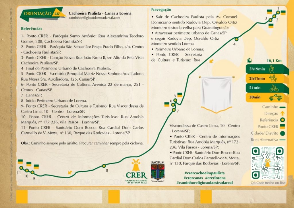 O Caminho Religioso da Estrada Real leva o peregrino, romeiro, caminhante e/ou turista da Basílica Nacional de Aparecida, na cidade de Aparecida/SP até a Basílica de Nossa Senhora da Piedade em Caeté/MG, ou vice e versa!